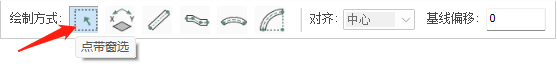 5.设置梁布置方式。在顶部工具条中选择【点带窗选】布置,如图2.3-7所示;