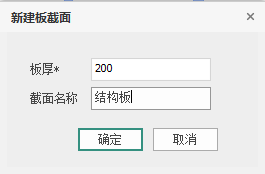 9.新建结构板截面。选择【建模】选项卡中的【板】,弹出的板布置对话框如图2.3-11所示。点击板布置对话框中的新建,弹出截面参数对话框如图 2.3-12所示。输入板厚,点击【确定】;