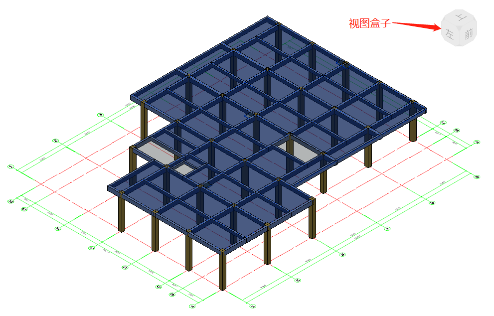 11.查看标准层1整体建模效果。同时按住键盘【ctrl】和鼠标中键,或点击右上角【视图盒子】按钮,可调整模型查看视角。
