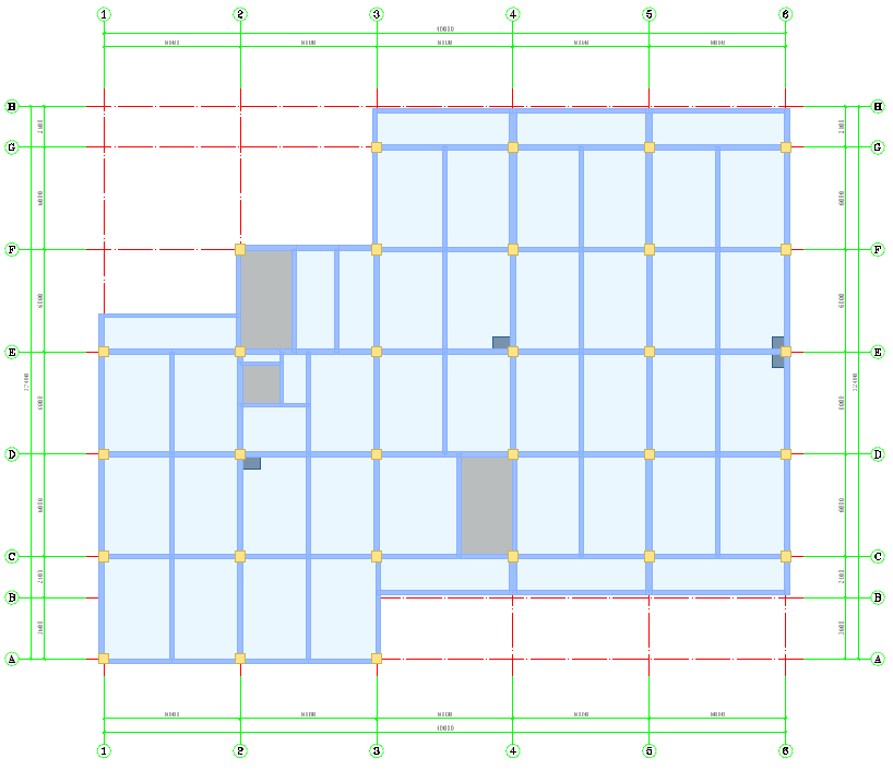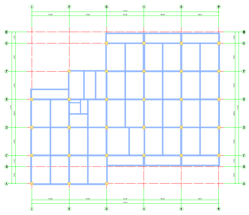 6.布置结构梁。按住鼠标左键拖动框选即可在轴线段上布置梁,如图2.3-8所示。