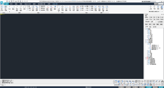 1.在PKPM结构软件中,选择【前处理及计算】选项卡。在弹出的保存提示中点击【保存】;对于弹出的后续操作对话框,按默认勾选后点击【确定】,执行模型清理操作,程序跳转到PKPM前处理及计算模块,操作界面如图2.6-1所示;