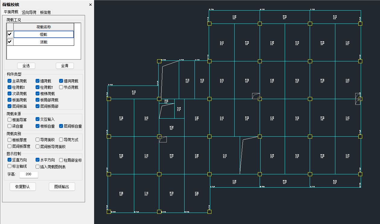 3.点击【前处理及计算】选项卡中的【荷载校核】,如图2.6-4所示。用户可再次确认荷载布置是否正确;