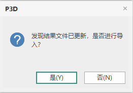 7.关闭PKPM界面,选择退出程序,系统将自动跳转回PKPM-BIM界面,此时弹窗提示“发现结果文件更新,是否进行导入?”,如图2.6-7所示。用户应点击【是】,将导入PKPM结构软件的计算结果至PKPM-BIM;