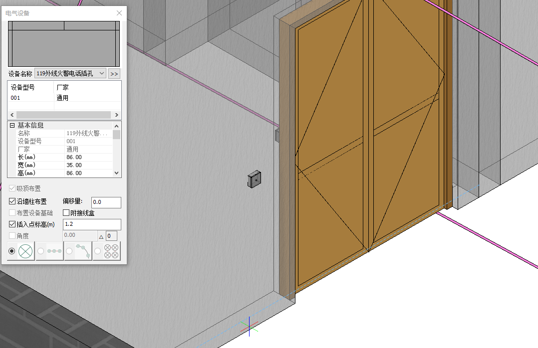 目录 搜索 展开 PKPM-BIM 项目应用案例教程第1章 建筑设计模块1.1 创建新项目1.1.1 创建新项目1.1.2 项目参数设置1.1.3 楼层设置1.1.4 放置轴网元素1.1.5 创建场地1.2 创建一层建筑主体1.2.1 创建柱1.2.2 创建墙1.2.3 创建楼板1.2.4 放置门窗1.2.4.1 普通门窗的设置1.2.4.2 常用设置集的配置1.2.4.3 自定义门窗设置1.2.4.4 放置门1.2.4.5 放置窗1.2.5 放置幕墙1.2.5.1 创建幕墙1.2.5.2 幕墙与墙体的剪切1.2.5.3 幕墙编辑1.2.6 创建房间、区域、楼梯1.2.6.1 创建房间1.2.6.2 创建防火分区1.2.6.3 创建楼梯1.3 创建二层建筑主体1.3.1 过滤选择1.3.2 局部复制1.3.3 二层构件修改1.3.3.1 墙体调整1.3.3.2 创建栏杆扶手1.3.3.3 放置门窗1.3.3.4 放置楼梯1.3.3.5 板上开洞1.3.3.6 创建房间和区域1.4创建三、四层建筑主体1.4.1 楼层复制1.4.2 楼板轮廓修改1.4.3 修改门窗1.5 创建屋顶层1.5.1 增强过滤器1.5.2 局部复制1.5.3 .同类构件的快速删除1.5.4 .墙体调整1.5.5 创建楼板1.5.6 创建门窗1.5.7 创建楼梯、栏杆1.5.8 创建房间和区域1.6 细部模型建立1.6.1 补充构件 1.6.1.1 增加台阶和坡道 1.6.1.2 增加栏杆扶手 1.6.1.3 增加雨棚 1.6.1.4 增加烟道 1.6.1.5 烟道洞口布置 1.6.2 放置素材1.6.2.1 素材库1.6.2.2 符号库1.6.2.3 参数化组件库1.7 清单1.8 智能审查1.9 出图1.9.1 出图流程介绍1.9.2 视图创建1.9.3 标注制图1.9.4 显示方案设置1.9.5 视图属性设置1.9.6 生成图纸1.9.7 成果导出第2章 结构设计模块2.1 新建项目 2.2 建立轴网 2.3 上部结构建模 2.4 楼层管理 2.5 计算分析前处理 2.6 计算结果查看 2.7 生成施工图 2.8 施工图审查第3章 暖通设计模块3.1 基本设置3.1.1 读取项目3.1.2 选择楼层3.1.3工程设置3.2 风系统建模3.2.1 风管绘制3.2.2 风口布置及连接3.3 空调水系统建模3.3.1 水管绘制3.3.2 风机盘管布置3.3.3 设备智能连接3.4 多联机系统3.4.1 室内外机布置3.4.2 多联机连管3.4.3 系统划分3.5 楼层复制3.6 材料统计3.6.1 材料统计3.6.2 材料结果查询3.7 模型审查3.7.1 全局属性3.7.2 条文审查3.7.3 调整模型3.8 暖通出图3.8.1 出图流程介绍3.8.2 视图映射创建3.8.3 标注制图3.8.4 显示方案设置3.8.5 视图属性设置3.8.6 生成图纸3.8.7 成果导出第4章 给排水设计模块4.1 设置4.1.1基本设置4.1.2系统设置4.2 给排水系统建模4.2.1 给排水管道绘制4.2.2 卫浴设备布置4.2.3 智能连接4.3 消火栓系统建模4.3.1 消火栓管绘制4.3.2 消火栓灭火器布置及连接4.4 喷淋系统建模4.4.1 喷头布置4.4.2 喷头连接4.4.3 识图建模4.5楼层复制4.6 材料统计4.6.1 材料统计4.6.2 材料结果查询4.7模型审查4.7.1 全局属性 4.7.2 条文审查4.7.3 调整模型4.8给排水出图4.8.1出图流程介绍4.8.2视图映射创建4.8.3标注制图4.8.4显示方案设置4.8.5视图属性设置4.8.6生成图纸4.8.7成果导出第5章 电气设计模块5.1 基本设置5.1.1 基本设置5.1.2 工程设置5.2 配电系统布置 5.2.1 配电柜布置5.2.2配电室桥架布置5.2.3配电室电缆沟布置5.2.4配电室变压器布置5.2.5配电箱布置5.3 照明系统布置5.3.1正常照明点位布置5.3.2应急照明照明点位布置5.4 火灾自动报警系统布置5.4.1 温感烟感点位布置5.4.2 消防广播点位布置5.4.3手报、声光报警器、消火栓启泵按钮、消防电话点位布置5.4.4消防端子箱布置5.5 弱电安防系统布置5.5.1监控摄像头点位布置5.5.2弱电插座点位布置5.5.3弱电机柜点位布置5.5.4识图建模5.6 平面布线5.6.1 设备连接5.6.2线管避让5.7楼层复制5.7.1 楼层复制5.8 材料统计5.8.1 材料统计5.8.2 材料结果查询5.9模型审查5.9.1 智能审查规则5.9.2 审查流程第6章 协同设计模块6.1 碰撞检查6.2 开洞提资6.2.1 生成开洞提资条件6.2.2 实际洞口处理生成6.3 净高分析6.3.1 净高设置6.3.2 净高平面6.3.3 净高检查6.4 模型链接6.5 合并工程 暂无相关搜索结果! 5.4.3手报、声光报警器、消火栓启泵按钮、消防电话点位布置 5.4.3手报、声光报警器、消火栓启泵按钮、消防电话点位布置操作步骤:1.点击消防报警在首层1-D轴布置一处带电话插孔的手动火灾报警按钮(壁装1.5m)和火灾声光报警器(壁装2.2m)。使用通用工具中的组块功能,进行块组装,快速复制到首层其他合适位置完成手报、声光报警器布置。如图5.4-3;按相同方式完成消火栓启泵按钮、消防电话点位布置。 图5.4-3 消防报警器布置