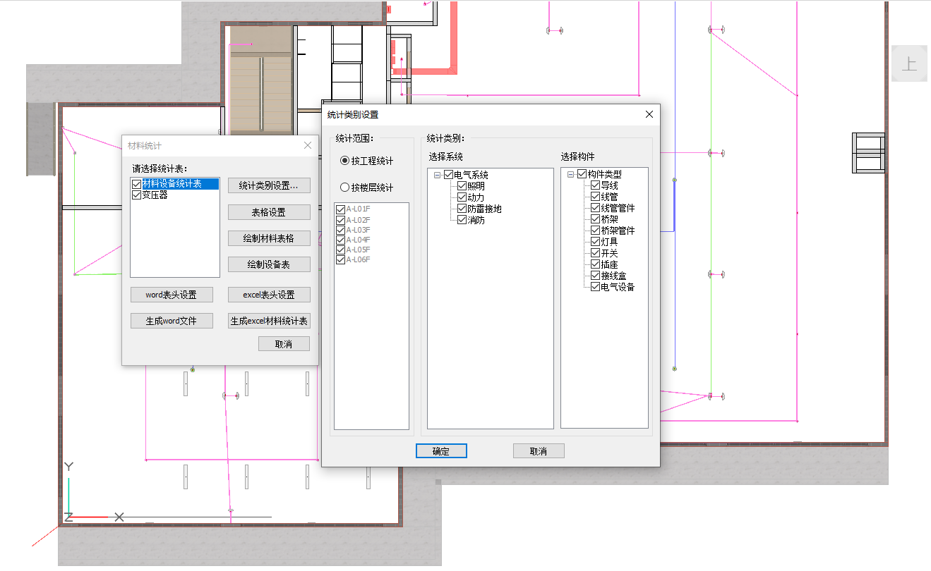 目录 搜索 展开 PKPM-BIM 项目应用案例教程第1章 建筑设计模块1.1 创建新项目1.1.1 创建新项目1.1.2 项目参数设置1.1.3 楼层设置1.1.4 放置轴网元素1.1.5 创建场地1.2 创建一层建筑主体1.2.1 创建柱1.2.2 创建墙1.2.3 创建楼板1.2.4 放置门窗1.2.4.1 普通门窗的设置1.2.4.2 常用设置集的配置1.2.4.3 自定义门窗设置1.2.4.4 放置门1.2.4.5 放置窗1.2.5 放置幕墙1.2.5.1 创建幕墙1.2.5.2 幕墙与墙体的剪切1.2.5.3 幕墙编辑1.2.6 创建房间、区域、楼梯1.2.6.1 创建房间1.2.6.2 创建防火分区1.2.6.3 创建楼梯1.3 创建二层建筑主体1.3.1 过滤选择1.3.2 局部复制1.3.3 二层构件修改1.3.3.1 墙体调整1.3.3.2 创建栏杆扶手1.3.3.3 放置门窗1.3.3.4 放置楼梯1.3.3.5 板上开洞1.3.3.6 创建房间和区域1.4创建三、四层建筑主体1.4.1 楼层复制1.4.2 楼板轮廓修改1.4.3 修改门窗1.5 创建屋顶层1.5.1 增强过滤器1.5.2 局部复制1.5.3 .同类构件的快速删除1.5.4 .墙体调整1.5.5 创建楼板1.5.6 创建门窗1.5.7 创建楼梯、栏杆1.5.8 创建房间和区域1.6 细部模型建立1.6.1 补充构件 1.6.1.1 增加台阶和坡道 1.6.1.2 增加栏杆扶手 1.6.1.3 增加雨棚 1.6.1.4 增加烟道 1.6.1.5 烟道洞口布置 1.6.2 放置素材1.6.2.1 素材库1.6.2.2 符号库1.6.2.3 参数化组件库1.7 清单1.8 智能审查1.9 出图1.9.1 出图流程介绍1.9.2 视图创建1.9.3 标注制图1.9.4 显示方案设置1.9.5 视图属性设置1.9.6 生成图纸1.9.7 成果导出第2章 结构设计模块2.1 新建项目 2.2 建立轴网 2.3 上部结构建模 2.4 楼层管理 2.5 计算分析前处理 2.6 计算结果查看 2.7 生成施工图 2.8 施工图审查第3章 暖通设计模块3.1 基本设置3.1.1 读取项目3.1.2 选择楼层3.1.3工程设置3.2 风系统建模3.2.1 风管绘制3.2.2 风口布置及连接3.3 空调水系统建模3.3.1 水管绘制3.3.2 风机盘管布置3.3.3 设备智能连接3.4 多联机系统3.4.1 室内外机布置3.4.2 多联机连管3.4.3 系统划分3.5 楼层复制3.6 材料统计3.6.1 材料统计3.6.2 材料结果查询3.7 模型审查3.7.1 全局属性3.7.2 条文审查3.7.3 调整模型3.8 暖通出图3.8.1 出图流程介绍3.8.2 视图映射创建3.8.3 标注制图3.8.4 显示方案设置3.8.5 视图属性设置3.8.6 生成图纸3.8.7 成果导出第4章 给排水设计模块4.1 设置4.1.1基本设置4.1.2系统设置4.2 给排水系统建模4.2.1 给排水管道绘制4.2.2 卫浴设备布置4.2.3 智能连接4.3 消火栓系统建模4.3.1 消火栓管绘制4.3.2 消火栓灭火器布置及连接4.4 喷淋系统建模4.4.1 喷头布置4.4.2 喷头连接4.4.3 识图建模4.5楼层复制4.6 材料统计4.6.1 材料统计4.6.2 材料结果查询4.7模型审查4.7.1 全局属性 4.7.2 条文审查4.7.3 调整模型4.8给排水出图4.8.1出图流程介绍4.8.2视图映射创建4.8.3标注制图4.8.4显示方案设置4.8.5视图属性设置4.8.6生成图纸4.8.7成果导出第5章 电气设计模块5.1 基本设置5.1.1 基本设置5.1.2 工程设置5.2 配电系统布置 5.2.1 配电柜布置5.2.2配电室桥架布置5.2.3配电室电缆沟布置5.2.4配电室变压器布置5.2.5配电箱布置5.3 照明系统布置5.3.1正常照明点位布置5.3.2应急照明照明点位布置5.4 火灾自动报警系统布置5.4.1 温感烟感点位布置5.4.2 消防广播点位布置5.4.3手报、声光报警器、消火栓启泵按钮、消防电话点位布置5.4.4消防端子箱布置5.5 弱电安防系统布置5.5.1监控摄像头点位布置5.5.2弱电插座点位布置5.5.3弱电机柜点位布置5.5.4识图建模5.6 平面布线5.6.1 设备连接5.6.2线管避让5.7楼层复制5.7.1 楼层复制5.8 材料统计5.8.1 材料统计5.8.2 材料结果查询5.9模型审查5.9.1 智能审查规则5.9.2 审查流程第6章 协同设计模块6.1 碰撞检查6.2 开洞提资6.2.1 生成开洞提资条件6.2.2 实际洞口处理生成6.3 净高分析6.3.1 净高设置6.3.2 净高平面6.3.3 净高检查6.4 模型链接6.5 合并工程 暂无相关搜索结果! 5.8.1 材料统计 5.8.1 材料统计操作步骤:1.点击图纸模块下材料统计功能,勾选统计表所包含信息,并可通过表格的表头设置及统计类别设置调整对应统计模式和统计表格样式,点击生成文件,生成材料统计表格。如图5.6-1; 图5.8-1 电气材料统计