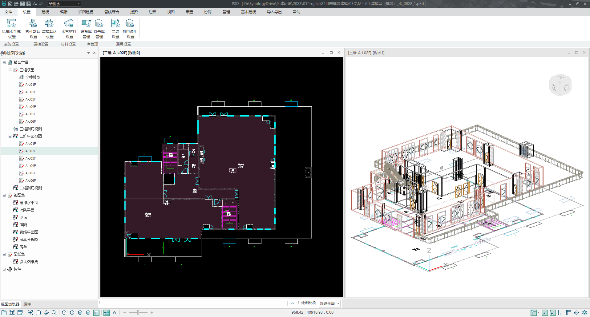 目录 搜索 展开 PKPM-BIM 项目应用案例教程第1章 建筑设计模块1.1 创建新项目1.1.1 创建新项目1.1.2 项目参数设置1.1.3 楼层设置1.1.4 放置轴网元素1.1.5 创建场地1.2 创建一层建筑主体1.2.1 创建柱1.2.2 创建墙1.2.3 创建楼板1.2.4 放置门窗1.2.4.1 普通门窗的设置1.2.4.2 常用设置集的配置1.2.4.3 自定义门窗设置1.2.4.4 放置门1.2.4.5 放置窗1.2.5 放置幕墙1.2.5.1 创建幕墙1.2.5.2 幕墙与墙体的剪切1.2.5.3 幕墙编辑1.2.6 创建房间、区域、楼梯1.2.6.1 创建房间1.2.6.2 创建防火分区1.2.6.3 创建楼梯1.3 创建二层建筑主体1.3.1 过滤选择1.3.2 局部复制1.3.3 二层构件修改1.3.3.1 墙体调整1.3.3.2 创建栏杆扶手1.3.3.3 放置门窗1.3.3.4 放置楼梯1.3.3.5 板上开洞1.3.3.6 创建房间和区域1.4创建三、四层建筑主体1.4.1 楼层复制1.4.2 楼板轮廓修改1.4.3 修改门窗1.5 创建屋顶层1.5.1 增强过滤器1.5.2 局部复制1.5.3 .同类构件的快速删除1.5.4 .墙体调整1.5.5 创建楼板1.5.6 创建门窗1.5.7 创建楼梯、栏杆1.5.8 创建房间和区域1.6 细部模型建立1.6.1 补充构件 1.6.1.1 增加台阶和坡道 1.6.1.2 增加栏杆扶手 1.6.1.3 增加雨棚 1.6.1.4 增加烟道 1.6.1.5 烟道洞口布置 1.6.2 放置素材1.6.2.1 素材库1.6.2.2 符号库1.6.2.3 参数化组件库1.7 清单1.8 智能审查1.9 出图1.9.1 出图流程介绍1.9.2 视图创建1.9.3 标注制图1.9.4 显示方案设置1.9.5 视图属性设置1.9.6 生成图纸1.9.7 成果导出第2章 结构设计模块2.1 新建项目 2.2 建立轴网 2.3 上部结构建模 2.4 楼层管理 2.5 计算分析前处理 2.6 计算结果查看 2.7 生成施工图 2.8 施工图审查第3章 暖通设计模块3.1 基本设置3.1.1 读取项目3.1.2 选择楼层3.1.3工程设置3.2 风系统建模3.2.1 风管绘制3.2.2 风口布置及连接3.3 空调水系统建模3.3.1 水管绘制3.3.2 风机盘管布置3.3.3 设备智能连接3.4 多联机系统3.4.1 室内外机布置3.4.2 多联机连管3.4.3 系统划分3.5 楼层复制3.6 材料统计3.6.1 材料统计3.6.2 材料结果查询3.7 模型审查3.7.1 全局属性3.7.2 条文审查3.7.3 调整模型3.8 暖通出图3.8.1 出图流程介绍3.8.2 视图映射创建3.8.3 标注制图3.8.4 显示方案设置3.8.5 视图属性设置3.8.6 生成图纸3.8.7 成果导出第4章 给排水设计模块4.1 设置4.1.1基本设置4.1.2系统设置4.2 给排水系统建模4.2.1 给排水管道绘制4.2.2 卫浴设备布置4.2.3 智能连接4.3 消火栓系统建模4.3.1 消火栓管绘制4.3.2 消火栓灭火器布置及连接4.4 喷淋系统建模4.4.1 喷头布置4.4.2 喷头连接4.4.3 识图建模4.5楼层复制4.6 材料统计4.6.1 材料统计4.6.2 材料结果查询4.7模型审查4.7.1 全局属性 4.7.2 条文审查4.7.3 调整模型4.8给排水出图4.8.1出图流程介绍4.8.2视图映射创建4.8.3标注制图4.8.4显示方案设置4.8.5视图属性设置4.8.6生成图纸4.8.7成果导出第5章 电气设计模块5.1 基本设置5.1.1 基本设置5.1.2 工程设置5.2 配电系统布置 5.2.1 配电柜布置5.2.2配电室桥架布置5.2.3配电室电缆沟布置5.2.4配电室变压器布置5.2.5配电箱布置5.3 照明系统布置5.3.1正常照明点位布置5.3.2应急照明照明点位布置5.4 火灾自动报警系统布置5.4.1 温感烟感点位布置5.4.2 消防广播点位布置5.4.3手报、声光报警器、消火栓启泵按钮、消防电话点位布置5.4.4消防端子箱布置5.5 弱电安防系统布置5.5.1监控摄像头点位布置5.5.2弱电插座点位布置5.5.3弱电机柜点位布置5.5.4识图建模5.6 平面布线5.6.1 设备连接5.6.2线管避让5.7楼层复制5.7.1 楼层复制5.8 材料统计5.8.1 材料统计5.8.2 材料结果查询5.9模型审查5.9.1 智能审查规则5.9.2 审查流程第6章 协同设计模块6.1 碰撞检查6.2 开洞提资6.2.1 生成开洞提资条件6.2.2 实际洞口处理生成6.3 净高分析6.3.1 净高设置6.3.2 净高平面6.3.3 净高检查6.4 模型链接6.5 合并工程 暂无相关搜索结果! 4.1 设置 4.1.1工程设置操作步骤:1.选择建筑给排水专业,打开项目,可直接读取楼层,并通过工程设置菜单,完成软件基本设置;(具体操作步骤见暖通设计模块第一节“基本设置”。)2.对于已打开项目文件且不在给排水设计模块的情况,可通过切换专业来完成设计模块间的快速切换。如图4.1-1;