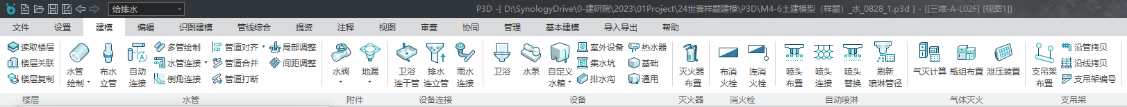 目录 搜索 展开 PKPM-BIM 项目应用案例教程第1章 建筑设计模块1.1 创建新项目1.1.1 创建新项目1.1.2 项目参数设置1.1.3 楼层设置1.1.4 放置轴网元素1.1.5 创建场地1.2 创建一层建筑主体1.2.1 创建柱1.2.2 创建墙1.2.3 创建楼板1.2.4 放置门窗1.2.4.1 普通门窗的设置1.2.4.2 常用设置集的配置1.2.4.3 自定义门窗设置1.2.4.4 放置门1.2.4.5 放置窗1.2.5 放置幕墙1.2.5.1 创建幕墙1.2.5.2 幕墙与墙体的剪切1.2.5.3 幕墙编辑1.2.6 创建房间、区域、楼梯1.2.6.1 创建房间1.2.6.2 创建防火分区1.2.6.3 创建楼梯1.3 创建二层建筑主体1.3.1 过滤选择1.3.2 局部复制1.3.3 二层构件修改1.3.3.1 墙体调整1.3.3.2 创建栏杆扶手1.3.3.3 放置门窗1.3.3.4 放置楼梯1.3.3.5 板上开洞1.3.3.6 创建房间和区域1.4创建三、四层建筑主体1.4.1 楼层复制1.4.2 楼板轮廓修改1.4.3 修改门窗1.5 创建屋顶层1.5.1 增强过滤器1.5.2 局部复制1.5.3 .同类构件的快速删除1.5.4 .墙体调整1.5.5 创建楼板1.5.6 创建门窗1.5.7 创建楼梯、栏杆1.5.8 创建房间和区域1.6 细部模型建立1.6.1 补充构件 1.6.1.1 增加台阶和坡道 1.6.1.2 增加栏杆扶手 1.6.1.3 增加雨棚 1.6.1.4 增加烟道 1.6.1.5 烟道洞口布置 1.6.2 放置素材1.6.2.1 素材库1.6.2.2 符号库1.6.2.3 参数化组件库1.7 清单1.8 智能审查1.9 出图1.9.1 出图流程介绍1.9.2 视图创建1.9.3 标注制图1.9.4 显示方案设置1.9.5 视图属性设置1.9.6 生成图纸1.9.7 成果导出第2章 结构设计模块2.1 新建项目 2.2 建立轴网 2.3 上部结构建模 2.4 楼层管理 2.5 计算分析前处理 2.6 计算结果查看 2.7 生成施工图 2.8 施工图审查第3章 暖通设计模块3.1 基本设置3.1.1 读取项目3.1.2 选择楼层3.1.3工程设置3.2 风系统建模3.2.1 风管绘制3.2.2 风口布置及连接3.3 空调水系统建模3.3.1 水管绘制3.3.2 风机盘管布置3.3.3 设备智能连接3.4 多联机系统3.4.1 室内外机布置3.4.2 多联机连管3.4.3 系统划分3.5 楼层复制3.6 材料统计3.6.1 材料统计3.6.2 材料结果查询3.7 模型审查3.7.1 全局属性3.7.2 条文审查3.7.3 调整模型3.8 暖通出图3.8.1 出图流程介绍3.8.2 视图映射创建3.8.3 标注制图3.8.4 显示方案设置3.8.5 视图属性设置3.8.6 生成图纸3.8.7 成果导出第4章 给排水设计模块4.1 设置4.1.1基本设置4.1.2系统设置4.2 给排水系统建模4.2.1 给排水管道绘制4.2.2 卫浴设备布置4.2.3 智能连接4.3 消火栓系统建模4.3.1 消火栓管绘制4.3.2 消火栓灭火器布置及连接4.4 喷淋系统建模4.4.1 喷头布置4.4.2 喷头连接4.4.3 识图建模4.5楼层复制4.6 材料统计4.6.1 材料统计4.6.2 材料结果查询4.7模型审查4.7.1 全局属性 4.7.2 条文审查4.7.3 调整模型4.8给排水出图4.8.1出图流程介绍4.8.2视图映射创建4.8.3标注制图4.8.4显示方案设置4.8.5视图属性设置4.8.6生成图纸4.8.7成果导出第5章 电气设计模块5.1 基本设置5.1.1 基本设置5.1.2 工程设置5.2 配电系统布置 5.2.1 配电柜布置5.2.2配电室桥架布置5.2.3配电室电缆沟布置5.2.4配电室变压器布置5.2.5配电箱布置5.3 照明系统布置5.3.1正常照明点位布置5.3.2应急照明照明点位布置5.4 火灾自动报警系统布置5.4.1 温感烟感点位布置5.4.2 消防广播点位布置5.4.3手报、声光报警器、消火栓启泵按钮、消防电话点位布置5.4.4消防端子箱布置5.5 弱电安防系统布置5.5.1监控摄像头点位布置5.5.2弱电插座点位布置5.5.3弱电机柜点位布置5.5.4识图建模5.6 平面布线5.6.1 设备连接5.6.2线管避让5.7楼层复制5.7.1 楼层复制5.8 材料统计5.8.1 材料统计5.8.2 材料结果查询5.9模型审查5.9.1 智能审查规则5.9.2 审查流程第6章 协同设计模块6.1 碰撞检查6.2 开洞提资6.2.1 生成开洞提资条件6.2.2 实际洞口处理生成6.3 净高分析6.3.1 净高设置6.3.2 净高平面6.3.3 净高检查6.4 模型链接6.5 合并工程 暂无相关搜索结果! 4.2 给排水系统建模 给排水系统建模操作步骤:1.打开“建模”菜单栏。如下图所示;