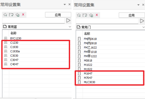 图 完成所有自定义门窗的自定义设置集添加