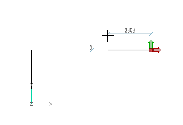 3)绘制过程中,单击键盘d键可激活动态尺寸线,同时在鼠标周围的端点生成红点标识,通过输入与标识点间的距离可定位线的起点,完成准确的绘制,如图所示。再次单击d键可关闭动态尺寸线。