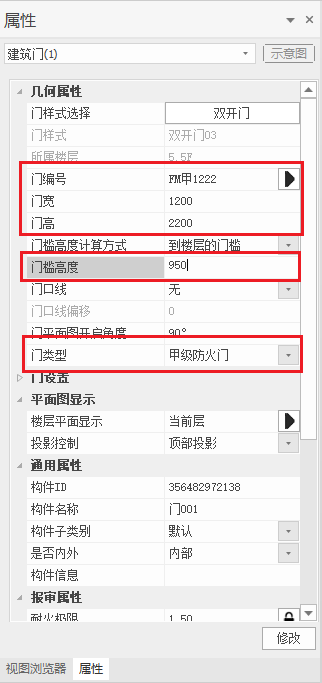 目录 搜索 展开 PKPM-BIM 项目应用案例教程第1章 建筑设计模块1.1 创建新项目1.1.1 创建新项目1.1.2 项目参数设置1.1.3 楼层设置1.1.4 放置轴网元素1.1.5 创建场地1.2 创建一层建筑主体1.2.1 创建柱1.2.2 创建墙1.2.3 创建楼板1.2.4 放置门窗1.2.4.1 普通门窗的设置1.2.4.2 常用设置集的配置1.2.4.3 自定义门窗设置1.2.4.4 放置门1.2.4.5 放置窗1.2.5 放置幕墙1.2.5.1 创建幕墙1.2.5.2 幕墙与墙体的剪切1.2.5.3 幕墙编辑1.2.6 创建房间、区域、楼梯1.2.6.1 创建房间1.2.6.2 创建防火分区1.2.6.3 创建楼梯1.3 创建二层建筑主体1.3.1 过滤选择1.3.2 局部复制1.3.3 二层构件修改1.3.3.1 墙体调整1.3.3.2 创建栏杆扶手1.3.3.3 放置门窗1.3.3.4 放置楼梯1.3.3.5 板上开洞1.3.3.6 创建房间和区域1.4创建三、四层建筑主体1.4.1 楼层复制1.4.2 楼板轮廓修改1.4.3 修改门窗1.5 创建屋顶层1.5.1 增强过滤器1.5.2 局部复制1.5.3 .同类构件的快速删除1.5.4 .墙体调整1.5.5 创建楼板1.5.6 创建门窗1.5.7 创建楼梯、栏杆1.5.8 创建房间和区域1.6 细部模型建立1.6.1 补充构件 1.6.1.1 增加台阶和坡道 1.6.1.2 增加栏杆扶手 1.6.1.3 增加雨棚 1.6.1.4 增加烟道 1.6.1.5 烟道洞口布置 1.6.2 放置素材1.6.2.1 素材库1.6.2.2 符号库1.6.2.3 参数化组件库1.7 清单1.8 智能审查1.9 出图1.9.1 出图流程介绍1.9.2 视图创建1.9.3 标注制图1.9.4 显示方案设置1.9.5 视图属性设置1.9.6 生成图纸1.9.7 成果导出第2章 结构设计模块2.1 新建项目 2.2 建立轴网 2.3 上部结构建模 2.4 楼层管理 2.5 计算分析前处理 2.6 计算结果查看 2.7 生成施工图 2.8 施工图审查第3章 暖通设计模块3.1 基本设置3.1.1 读取项目3.1.2 选择楼层3.1.3工程设置3.2 风系统建模3.2.1 风管绘制3.2.2 风口布置及连接3.3 空调水系统建模3.3.1 水管绘制3.3.2 风机盘管布置3.3.3 设备智能连接3.4 多联机系统3.4.1 室内外机布置3.4.2 多联机连管3.4.3 系统划分3.5 楼层复制3.6 材料统计3.6.1 材料统计3.6.2 材料结果查询3.7 模型审查3.7.1 全局属性3.7.2 条文审查3.7.3 调整模型3.8 暖通出图3.8.1 出图流程介绍3.8.2 视图映射创建3.8.3 标注制图3.8.4 显示方案设置3.8.5 视图属性设置3.8.6 生成图纸3.8.7 成果导出第4章 给排水设计模块4.1 设置4.1.1基本设置4.1.2系统设置4.2 给排水系统建模4.2.1 给排水管道绘制4.2.2 卫浴设备布置4.2.3 智能连接4.3 消火栓系统建模4.3.1 消火栓管绘制4.3.2 消火栓灭火器布置及连接4.4 喷淋系统建模4.4.1 喷头布置4.4.2 喷头连接4.4.3 识图建模4.5楼层复制4.6 材料统计4.6.1 材料统计4.6.2 材料结果查询4.7模型审查4.7.1 全局属性 4.7.2 条文审查4.7.3 调整模型4.8给排水出图4.8.1出图流程介绍4.8.2视图映射创建4.8.3标注制图4.8.4显示方案设置4.8.5视图属性设置4.8.6生成图纸4.8.7成果导出第5章 电气设计模块5.1 基本设置5.1.1 基本设置5.1.2 工程设置5.2 配电系统布置 5.2.1 配电柜布置5.2.2配电室桥架布置5.2.3配电室电缆沟布置5.2.4配电室变压器布置5.2.5配电箱布置5.3 照明系统布置5.3.1正常照明点位布置5.3.2应急照明照明点位布置5.4 火灾自动报警系统布置5.4.1 温感烟感点位布置5.4.2 消防广播点位布置5.4.3手报、声光报警器、消火栓启泵按钮、消防电话点位布置5.4.4消防端子箱布置5.5 弱电安防系统布置5.5.1监控摄像头点位布置5.5.2弱电插座点位布置5.5.3弱电机柜点位布置5.5.4识图建模5.6 平面布线5.6.1 设备连接5.6.2线管避让5.7楼层复制5.7.1 楼层复制5.8 材料统计5.8.1 材料统计5.8.2 材料结果查询5.9模型审查5.9.1 智能审查规则5.9.2 审查流程第6章 协同设计模块6.1 碰撞检查6.2 开洞提资6.2.1 生成开洞提资条件6.2.2 实际洞口处理生成6.3 净高分析6.3.1 净高设置6.3.2 净高平面6.3.3 净高检查6.4 模型链接6.5 合并工程 暂无相关搜索结果! 1.5.6 创建门窗 找到1.2.4.2/1.2.4.3章节中已经添加到常用设置集中的门窗,双击激活对应门窗布置命令后,在屋顶层墙体上布置门窗,门窗位置见下图,布置方式参照1.2.4:(注:为简化教程,门窗位置与图纸近似即可) 修改特殊门FM甲1222的门槛高度为950mm,属性参数如图: 图 电梯机房门窗的参数 完成后效果如图所示: 图 电梯机房布置门窗后的效果