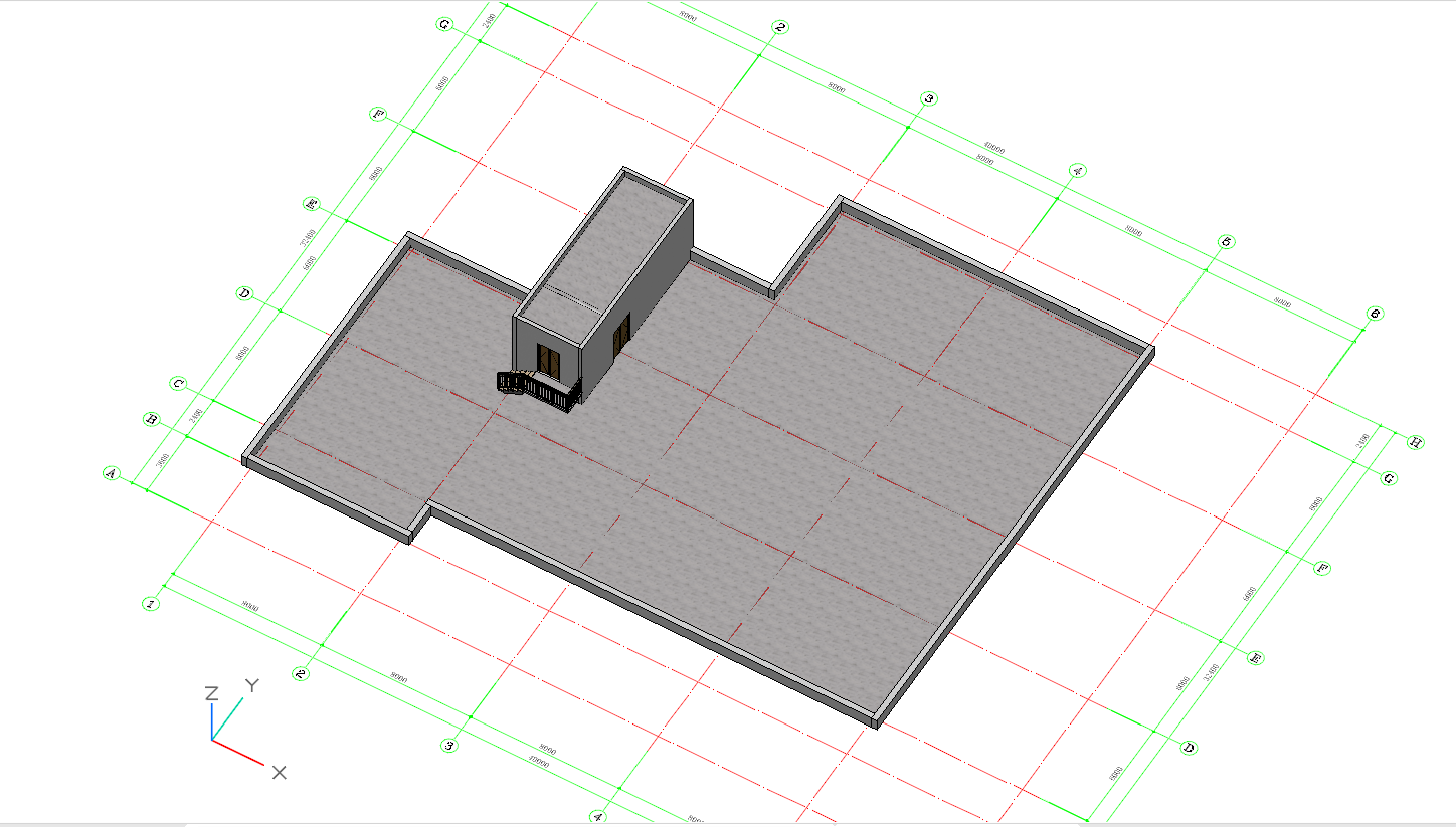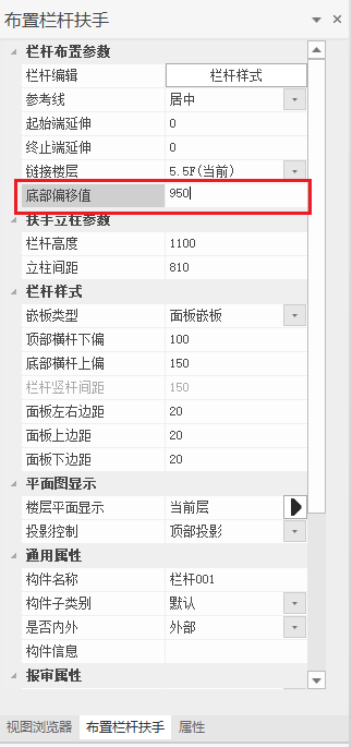 - 在“建模”菜单栏下,找到并点击“栏杆扶手”工具,创建平台板上的栏杆,位置和参数如下图所示: