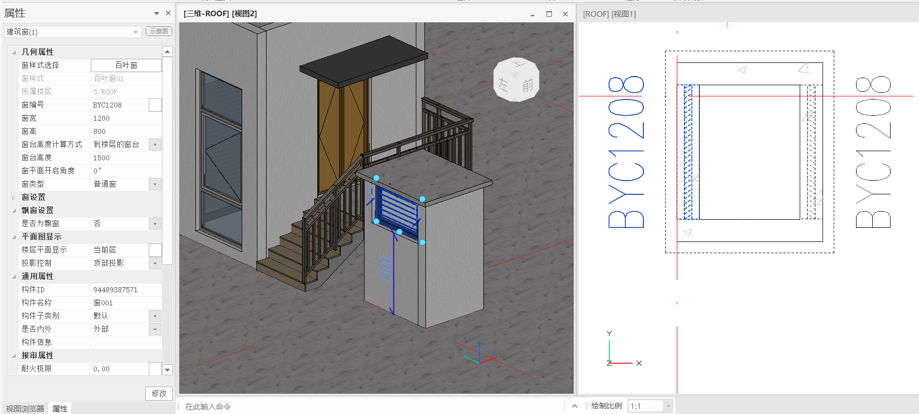 - 选中一层的烟道墙体,使用局部复制功能,操作步骤参考1.5.2,分别复制到屋顶层和2层中,墙体属性改为未链接,2层烟道高度改为2350mm,屋顶层烟道高度改为2300mm;