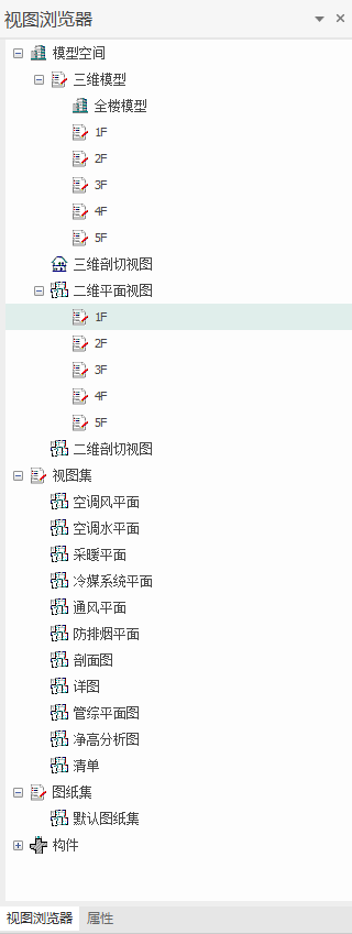 1.打开项目,可直接读取建模模型楼层信息,并在左侧项目浏览器进行显示,如图 3.1-4;
