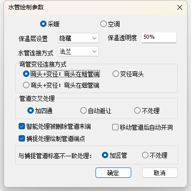 4.在水管建模设置–水管绘制参数中选择默认选项,如图 3.1-10;