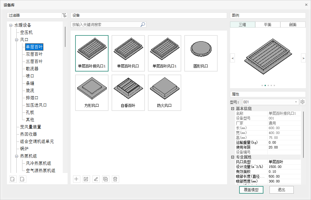 6.点击设备库管理,弹出界面,可显示设备库包含设备,已自动读取可直接进行布置应用,如图 3.1-12;