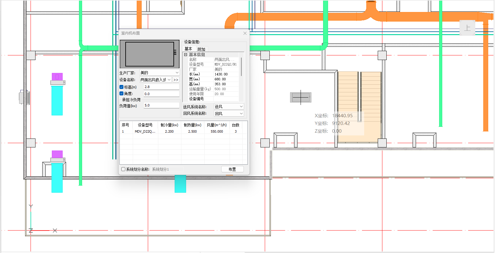 目录 搜索 展开 PKPM-BIM 项目应用案例教程第1章 建筑设计模块1.1 创建新项目1.1.1 创建新项目1.1.2 项目参数设置1.1.3 楼层设置1.1.4 放置轴网元素1.1.5 创建场地1.2 创建一层建筑主体1.2.1 创建柱1.2.2 创建墙1.2.3 创建楼板1.2.4 放置门窗1.2.4.1 普通门窗的设置1.2.4.2 常用设置集的配置1.2.4.3 自定义门窗设置1.2.4.4 放置门1.2.4.5 放置窗1.2.5 放置幕墙1.2.5.1 创建幕墙1.2.5.2 幕墙与墙体的剪切1.2.5.3 幕墙编辑1.2.6 创建房间、区域、楼梯1.2.6.1 创建房间1.2.6.2 创建防火分区1.2.6.3 创建楼梯1.3 创建二层建筑主体1.3.1 过滤选择1.3.2 局部复制1.3.3 二层构件修改1.3.3.1 墙体调整1.3.3.2 创建栏杆扶手1.3.3.3 放置门窗1.3.3.4 放置楼梯1.3.3.5 板上开洞1.3.3.6 创建房间和区域1.4创建三、四层建筑主体1.4.1 楼层复制1.4.2 楼板轮廓修改1.4.3 修改门窗1.5 创建屋顶层1.5.1 增强过滤器1.5.2 局部复制1.5.3 .同类构件的快速删除1.5.4 .墙体调整1.5.5 创建楼板1.5.6 创建门窗1.5.7 创建楼梯、栏杆1.5.8 创建房间和区域1.6 细部模型建立1.6.1 补充构件 1.6.1.1 增加台阶和坡道 1.6.1.2 增加栏杆扶手 1.6.1.3 增加雨棚 1.6.1.4 增加烟道 1.6.1.5 烟道洞口布置 1.6.2 放置素材1.6.2.1 素材库1.6.2.2 符号库1.6.2.3 参数化组件库1.7 清单1.8 智能审查1.9 出图1.9.1 出图流程介绍1.9.2 视图创建1.9.3 标注制图1.9.4 显示方案设置1.9.5 视图属性设置1.9.6 生成图纸1.9.7 成果导出第2章 结构设计模块2.1 新建项目 2.2 建立轴网 2.3 上部结构建模 2.4 楼层管理 2.5 计算分析前处理 2.6 计算结果查看 2.7 生成施工图 2.8 施工图审查第3章 暖通设计模块3.1 基本设置3.1.1 读取项目3.1.2 选择楼层3.1.3工程设置3.2 风系统建模3.2.1 风管绘制3.2.2 风口布置及连接3.3 空调水系统建模3.3.1 水管绘制3.3.2 风机盘管布置3.3.3 设备智能连接3.4 多联机系统3.4.1 室内外机布置3.4.2 多联机连管3.4.3 系统划分3.5 楼层复制3.6 材料统计3.6.1 材料统计3.6.2 材料结果查询3.7 模型审查3.7.1 全局属性3.7.2 条文审查3.7.3 调整模型3.8 暖通出图3.8.1 出图流程介绍3.8.2 视图映射创建3.8.3 标注制图3.8.4 显示方案设置3.8.5 视图属性设置3.8.6 生成图纸3.8.7 成果导出第4章 给排水设计模块4.1 设置4.1.1基本设置4.1.2系统设置4.2 给排水系统建模4.2.1 给排水管道绘制4.2.2 卫浴设备布置4.2.3 智能连接4.3 消火栓系统建模4.3.1 消火栓管绘制4.3.2 消火栓灭火器布置及连接4.4 喷淋系统建模4.4.1 喷头布置4.4.2 喷头连接4.4.3 识图建模4.5楼层复制4.6 材料统计4.6.1 材料统计4.6.2 材料结果查询4.7模型审查4.7.1 全局属性 4.7.2 条文审查4.7.3 调整模型4.8给排水出图4.8.1出图流程介绍4.8.2视图映射创建4.8.3标注制图4.8.4显示方案设置4.8.5视图属性设置4.8.6生成图纸4.8.7成果导出第5章 电气设计模块5.1 基本设置5.1.1 基本设置5.1.2 工程设置5.2 配电系统布置 5.2.1 配电柜布置5.2.2配电室桥架布置5.2.3配电室电缆沟布置5.2.4配电室变压器布置5.2.5配电箱布置5.3 照明系统布置5.3.1正常照明点位布置5.3.2应急照明照明点位布置5.4 火灾自动报警系统布置5.4.1 温感烟感点位布置5.4.2 消防广播点位布置5.4.3手报、声光报警器、消火栓启泵按钮、消防电话点位布置5.4.4消防端子箱布置5.5 弱电安防系统布置5.5.1监控摄像头点位布置5.5.2弱电插座点位布置5.5.3弱电机柜点位布置5.5.4识图建模5.6 平面布线5.6.1 设备连接5.6.2线管避让5.7楼层复制5.7.1 楼层复制5.8 材料统计5.8.1 材料统计5.8.2 材料结果查询5.9模型审查5.9.1 智能审查规则5.9.2 审查流程第6章 协同设计模块6.1 碰撞检查6.2 开洞提资6.2.1 生成开洞提资条件6.2.2 实际洞口处理生成6.3 净高分析6.3.1 净高设置6.3.2 净高平面6.3.3 净高检查6.4 模型链接6.5 合并工程 暂无相关搜索结果! 3.4.1 室内外机布置 操作步骤:1.点击多联机工具栏中-室内机,选择设备为分体空调-立柜式12kw,修改标高为0m,室外机布置操作相同,完成室内外机的布置,如图3.4-1; 图 3.4-1 室内外机布置