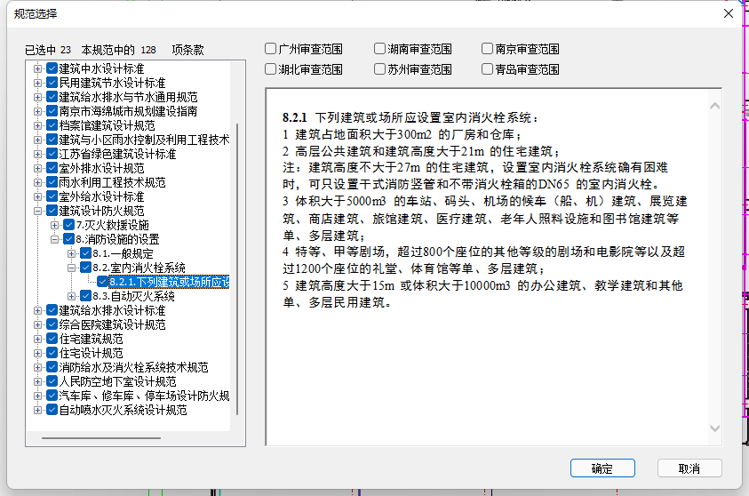 目录 搜索 展开 PKPM-BIM 项目应用案例教程第1章 建筑设计模块1.1 创建新项目1.1.1 创建新项目1.1.2 项目参数设置1.1.3 楼层设置1.1.4 放置轴网元素1.1.5 创建场地1.2 创建一层建筑主体1.2.1 创建柱1.2.2 创建墙1.2.3 创建楼板1.2.4 放置门窗1.2.4.1 普通门窗的设置1.2.4.2 常用设置集的配置1.2.4.3 自定义门窗设置1.2.4.4 放置门1.2.4.5 放置窗1.2.5 放置幕墙1.2.5.1 创建幕墙1.2.5.2 幕墙与墙体的剪切1.2.5.3 幕墙编辑1.2.6 创建房间、区域、楼梯1.2.6.1 创建房间1.2.6.2 创建防火分区1.2.6.3 创建楼梯1.3 创建二层建筑主体1.3.1 过滤选择1.3.2 局部复制1.3.3 二层构件修改1.3.3.1 墙体调整1.3.3.2 创建栏杆扶手1.3.3.3 放置门窗1.3.3.4 放置楼梯1.3.3.5 板上开洞1.3.3.6 创建房间和区域1.4创建三、四层建筑主体1.4.1 楼层复制1.4.2 楼板轮廓修改1.4.3 修改门窗1.5 创建屋顶层1.5.1 增强过滤器1.5.2 局部复制1.5.3 .同类构件的快速删除1.5.4 .墙体调整1.5.5 创建楼板1.5.6 创建门窗1.5.7 创建楼梯、栏杆1.5.8 创建房间和区域1.6 细部模型建立1.6.1 补充构件 1.6.1.1 增加台阶和坡道 1.6.1.2 增加栏杆扶手 1.6.1.3 增加雨棚 1.6.1.4 增加烟道 1.6.1.5 烟道洞口布置 1.6.2 放置素材1.6.2.1 素材库1.6.2.2 符号库1.6.2.3 参数化组件库1.7 清单1.8 智能审查1.9 出图1.9.1 出图流程介绍1.9.2 视图创建1.9.3 标注制图1.9.4 显示方案设置1.9.5 视图属性设置1.9.6 生成图纸1.9.7 成果导出第2章 结构设计模块2.1 新建项目 2.2 建立轴网 2.3 上部结构建模 2.4 楼层管理 2.5 计算分析前处理 2.6 计算结果查看 2.7 生成施工图 2.8 施工图审查第3章 暖通设计模块3.1 基本设置3.1.1 读取项目3.1.2 选择楼层3.1.3工程设置3.2 风系统建模3.2.1 风管绘制3.2.2 风口布置及连接3.3 空调水系统建模3.3.1 水管绘制3.3.2 风机盘管布置3.3.3 设备智能连接3.4 多联机系统3.4.1 室内外机布置3.4.2 多联机连管3.4.3 系统划分3.5 楼层复制3.6 材料统计3.6.1 材料统计3.6.2 材料结果查询3.7 模型审查3.7.1 全局属性3.7.2 条文审查3.7.3 调整模型3.8 暖通出图3.8.1 出图流程介绍3.8.2 视图映射创建3.8.3 标注制图3.8.4 显示方案设置3.8.5 视图属性设置3.8.6 生成图纸3.8.7 成果导出第4章 给排水设计模块4.1 设置4.1.1基本设置4.1.2系统设置4.2 给排水系统建模4.2.1 给排水管道绘制4.2.2 卫浴设备布置4.2.3 智能连接4.3 消火栓系统建模4.3.1 消火栓管绘制4.3.2 消火栓灭火器布置及连接4.4 喷淋系统建模4.4.1 喷头布置4.4.2 喷头连接4.4.3 识图建模4.5楼层复制4.6 材料统计4.6.1 材料统计4.6.2 材料结果查询4.7模型审查4.7.1 全局属性 4.7.2 条文审查4.7.3 调整模型4.8给排水出图4.8.1出图流程介绍4.8.2视图映射创建4.8.3标注制图4.8.4显示方案设置4.8.5视图属性设置4.8.6生成图纸4.8.7成果导出第5章 电气设计模块5.1 基本设置5.1.1 基本设置5.1.2 工程设置5.2 配电系统布置 5.2.1 配电柜布置5.2.2配电室桥架布置5.2.3配电室电缆沟布置5.2.4配电室变压器布置5.2.5配电箱布置5.3 照明系统布置5.3.1正常照明点位布置5.3.2应急照明照明点位布置5.4 火灾自动报警系统布置5.4.1 温感烟感点位布置5.4.2 消防广播点位布置5.4.3手报、声光报警器、消火栓启泵按钮、消防电话点位布置5.4.4消防端子箱布置5.5 弱电安防系统布置5.5.1监控摄像头点位布置5.5.2弱电插座点位布置5.5.3弱电机柜点位布置5.5.4识图建模5.6 平面布线5.6.1 设备连接5.6.2线管避让5.7楼层复制5.7.1 楼层复制5.8 材料统计5.8.1 材料统计5.8.2 材料结果查询5.9模型审查5.9.1 智能审查规则5.9.2 审查流程第6章 协同设计模块6.1 碰撞检查6.2 开洞提资6.2.1 生成开洞提资条件6.2.2 实际洞口处理生成6.3 净高分析6.3.1 净高设置6.3.2 净高平面6.3.3 净高检查6.4 模型链接6.5 合并工程 暂无相关搜索结果! 4.7.2 条文审查 设置全局属性后,点击确定,弹出规范选择界面,可支持按地区筛选当前支持规范条文,左侧树状列表勾选审查规范条文,并可显示具体规范条文内容;如图4.7-3; 图4.7-3 勾选审查条文