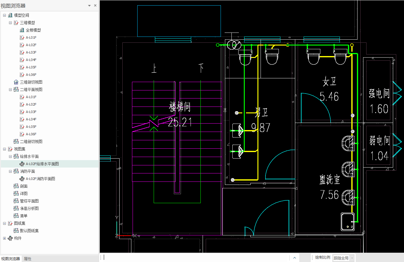 - 用以上类似方法,可创建同一楼层下的给排水平面图映射。