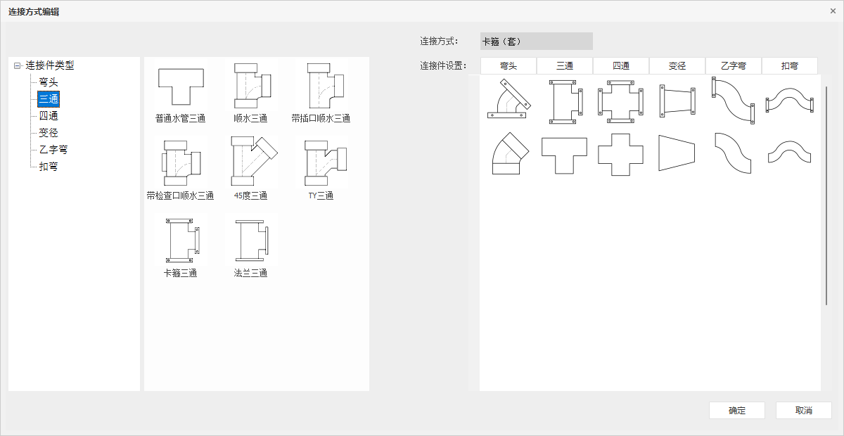 目录 搜索 展开 首页乘车路线版权与商标说明免责声明通用功能链接软件答疑与交流更新说明20262026 R1.22026 R1.12026 R1.020252025 R2.12025 R2.02025 R1.22025 R1.120242024 R2.22024 R2.12024 R2.02024 R1.42024 R1.32024 R1.22024 R1.12024 R1.020232023 R2.42023 R2.32023 R2.22023 R2.02023 R1.12023 R1.52023 R1.42023 R1.32023 R1.22023 R1.020222022 R3.12022 R3.02022 R2.32022 R2.22022 R2.12022 R2.02022 R1.42022 R1.32022 R1.22022 R1.0应用环境运行环境启动界面操作界面快速访问工具栏视图盒子模型操作视图区命令提示行项目浏览器属性面板多窗口显示设置视图工具条光照亮度三维坐标捕捉设置暖通专业设计暖通专业工程设置风系统设置水系统设置风管默认连接设置风管建模设置水管建模设置水管件默认设置风管材料设置水管材料设置地暖盘管材料设置二维设置空调风系统风管绘制风管编辑风立管风管连接件风管对齐风口布置风口连接静压箱换气扇、风机挡烟垂壁空调水系统水管绘制布空调立管多管绘制水管连接水管编辑风盘连水多联机系统室内机室外机多联机连管多联机分歧管采暖系统布散热器立干连接散立连接散干连接散散连接自动盘管手绘盘管盘管打断盘管合并布分集水器连分集水器设备及附件布置风盘水泵常用基础通用组合空调风阀消声器风管软连接水阀仪表角阀三通阀水管软接头组合阀暖通识图建模DWG编辑风管识图翻模水管识图建模风口识图翻模识别水阀仪表暖通标注风管标注风口标注管线文字水管标注立管标注出入户管标注管道坡度标注引出标注给排水专业设计给排水专业工程设置给排水系统设置管件默认设置给排水建模设置水管材料设置二维设置管道建模水管绘制多管绘制布水立管水管连接水管编辑水管连接件管道附件布置自动连接标准连接设备布置与连接卫浴布置卫浴连接水箱水泵基础集水坑排水沟室外设备通用消防系统建模消火栓系统布置与连接自动喷淋系统布置与连接气体灭火建模计算灭火器建模给排水识图建模消火栓识图建模消防喷淋系统水管识图建模水阀识图建模给排水标注管线文字水管标注立管标注出入户管标注喷头定位标注管道坡度标注引出标注电气专业设计电气专业工程设置线管系统设置桥架系统设置桥架默认连接件设置线管建模设置线管材料设置二维设置线管/桥架绘制桥架/线槽桥架布置桥架分支选择竖直桥架布置多层桥架桥架连接线管/导线线管布置竖直线管线管连接线管空间连接导线布置线管对齐强电系统设备灯具开关插座接线盒通用设备布置楼梯间布置防雷接地导体布置防雷布置接地布置弱电系统设备温烟感布置消防报警弱电通用综合布线变配电设备配电箱布置引出线管引出桥架配电箱系统检索变压器配电柜设备基础母线槽布置母线槽连接电缆沟设备连接设备连接连配电箱接口连接连接桥架电气专业计算区域照度计算防雷计算房间照度计算电气负荷计算电流计算负荷计算查看报告书电气专业标注引线布置灯具标注桥架标注导线标注标配电箱标水暖设备标导线数&根数修改设备标注回路标注&回路识别电气识图建模DWG处理工具电气设备点位桥架翻模设备库编辑设备库管理新建设备专业信息添加拆开设备整体缩放导入revit族组合设备库导入模型编辑过滤选择增强过滤器检查分支编辑水平设备标高分支标高分支选择坡度调整设备替换设备编号楼层归属删除重复拾取/刷新属性测量长度面积标高坐标支吊架布置支吊架布置支吊架延管拷贝支吊架沿线拷贝支吊架编号管线综合碰撞检查碰撞检查碰撞结果碰撞报告书管道编辑水暖空间搭接水暖局部调整线管局部调整桥架升降调整间距调整水管标准连接管道合并/打断水管对齐通用对齐管综平面图三维标注局部剖切专业协同合并工程净高分析净高设置净高平面净高检查水暖提资开洞提资任意布洞自动开洞开洞设置取消洞口开洞列表布置套管云协同材料统计材料统计统计结果清单生成清单样式清单结果支吊架统计模型审查审查流程全局属性智能审查通用工具设可见性查找构件选择过滤增强过滤测量工具基本建模模板标高机制机电专业标高机制构件复制 暂无相关搜索结果! 管件默认设置 点击【设置】-【管件默认设置】。水管件默认设置界面如下图所示,可以查看每种连接方式所配置的各类水管连接件的几何样式。 功能说明 【查看按钮】 点击左下角的查看小图标按钮,进入下图界面。 可以查看软件中,各类水管连接件的所有几何样式。