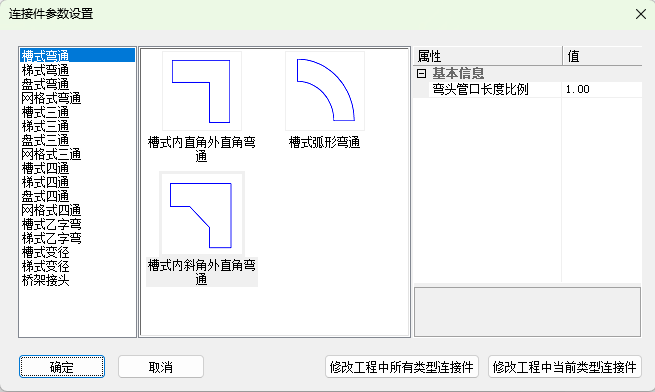 目录 搜索 展开 首页乘车路线版权与商标说明免责声明通用功能链接软件答疑与交流更新说明20262026 R1.22026 R1.12026 R1.020252025 R2.12025 R2.02025 R1.22025 R1.120242024 R2.22024 R2.12024 R2.02024 R1.42024 R1.32024 R1.22024 R1.12024 R1.020232023 R2.42023 R2.32023 R2.22023 R2.02023 R1.12023 R1.52023 R1.42023 R1.32023 R1.22023 R1.020222022 R3.12022 R3.02022 R2.32022 R2.22022 R2.12022 R2.02022 R1.42022 R1.32022 R1.22022 R1.0应用环境运行环境启动界面操作界面快速访问工具栏视图盒子模型操作视图区命令提示行项目浏览器属性面板多窗口显示设置视图工具条光照亮度三维坐标捕捉设置暖通专业设计暖通专业工程设置风系统设置水系统设置风管默认连接设置风管建模设置水管建模设置水管件默认设置风管材料设置水管材料设置地暖盘管材料设置二维设置空调风系统风管绘制风管编辑风立管风管连接件风管对齐风口布置风口连接静压箱换气扇、风机挡烟垂壁空调水系统水管绘制布空调立管多管绘制水管连接水管编辑风盘连水多联机系统室内机室外机多联机连管多联机分歧管采暖系统布散热器立干连接散立连接散干连接散散连接自动盘管手绘盘管盘管打断盘管合并布分集水器连分集水器设备及附件布置风盘水泵常用基础通用组合空调风阀消声器风管软连接水阀仪表角阀三通阀水管软接头组合阀暖通识图建模DWG编辑风管识图翻模水管识图建模风口识图翻模识别水阀仪表暖通标注风管标注风口标注管线文字水管标注立管标注出入户管标注管道坡度标注引出标注给排水专业设计给排水专业工程设置给排水系统设置管件默认设置给排水建模设置水管材料设置二维设置管道建模水管绘制多管绘制布水立管水管连接水管编辑水管连接件管道附件布置自动连接标准连接设备布置与连接卫浴布置卫浴连接水箱水泵基础集水坑排水沟室外设备通用消防系统建模消火栓系统布置与连接自动喷淋系统布置与连接气体灭火建模计算灭火器建模给排水识图建模消火栓识图建模消防喷淋系统水管识图建模水阀识图建模给排水标注管线文字水管标注立管标注出入户管标注喷头定位标注管道坡度标注引出标注电气专业设计电气专业工程设置线管系统设置桥架系统设置桥架默认连接件设置线管建模设置线管材料设置二维设置线管/桥架绘制桥架/线槽桥架布置桥架分支选择竖直桥架布置多层桥架桥架连接线管/导线线管布置竖直线管线管连接线管空间连接导线布置线管对齐强电系统设备灯具开关插座接线盒通用设备布置楼梯间布置防雷接地导体布置防雷布置接地布置弱电系统设备温烟感布置消防报警弱电通用综合布线变配电设备配电箱布置引出线管引出桥架配电箱系统检索变压器配电柜设备基础母线槽布置母线槽连接电缆沟设备连接设备连接连配电箱接口连接连接桥架电气专业计算区域照度计算防雷计算房间照度计算电气负荷计算电流计算负荷计算查看报告书电气专业标注引线布置灯具标注桥架标注导线标注标配电箱标水暖设备标导线数&根数修改设备标注回路标注&回路识别电气识图建模DWG处理工具电气设备点位桥架翻模设备库编辑设备库管理新建设备专业信息添加拆开设备整体缩放导入revit族组合设备库导入模型编辑过滤选择增强过滤器检查分支编辑水平设备标高分支标高分支选择坡度调整设备替换设备编号楼层归属删除重复拾取/刷新属性测量长度面积标高坐标支吊架布置支吊架布置支吊架延管拷贝支吊架沿线拷贝支吊架编号管线综合碰撞检查碰撞检查碰撞结果碰撞报告书管道编辑水暖空间搭接水暖局部调整线管局部调整桥架升降调整间距调整水管标准连接管道合并/打断水管对齐通用对齐管综平面图三维标注局部剖切专业协同合并工程净高分析净高设置净高平面净高检查水暖提资开洞提资任意布洞自动开洞开洞设置取消洞口开洞列表布置套管云协同材料统计材料统计统计结果清单生成清单样式清单结果支吊架统计模型审查审查流程全局属性智能审查通用工具设可见性查找构件选择过滤增强过滤测量工具基本建模模板标高机制机电专业标高机制构件复制 暂无相关搜索结果! 桥架默认连接件设置 点击【设置】-【建模设置】-【桥架默认连接件】,如图所示,在桥架默认连接件设置界面中完成在桥架绘制及桥架连接中默认连接件的设置,通过右侧的属性栏可以修改连接件的参数。 功能说明 【修改工程中当前类型连接件】选项用于修改工程中存在的当前选中连接件的属性值。 【修改工程中所有类型连接件】选项用于修改工程中存在的所有修改的连接件属性值。