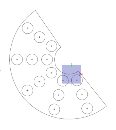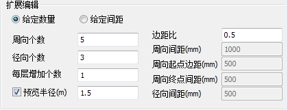 【扇形布置】扇形布置参数设定界面如图5.1.2-8所示,扇形布置有标准扇形布置和任意扇形布置。参数中距边角度比为扇形边与沿径向最近一行风口圆心角与沿扇形径向相邻两行风口圆心角之比。设定完参数后,即可在绘图区根据提示完成扇形布置,扇形布置风口预览如图5.1.2-9所示。