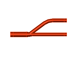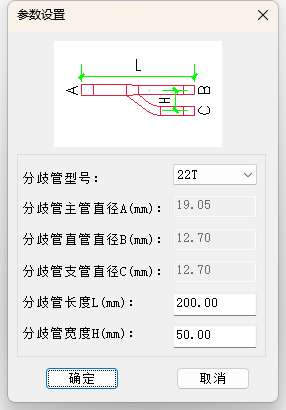 【连接】 依次点取分歧管的主管道和支管,直接生成匹配类型的分歧管,点击的第一根冷媒管为分歧管流向的方向;两根冷媒管如果平行或共线则不能生成分歧管;
