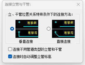 - 根据需要勾选不同管道类型能够连接;连接时自动调整立管标高选项;