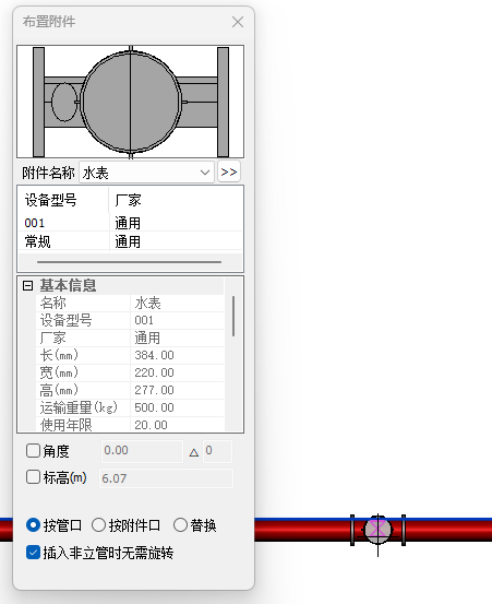 2、如果布置在立管上,会以编辑框中的数值作为水阀标高进行布置。