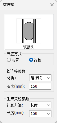 【任意布置】在屏幕选取软接头布置点进行布置。当鼠标移动到管道或设备上时,工具会根据捕获到的水管或设备的管口截面类型及管口尺寸,自动更新软接头工具参数,同时生成动态预览效果。用户点击鼠标左键可完成软接头布置。