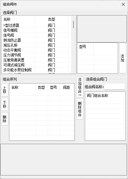 【添加组合】将组合序列中的设备按名称添加到阀门组合中以供选择。