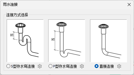 【雨水连接】可以根据需要选择连接方式进行雨水连接。