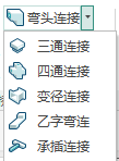 点击【建模】-【桥架】-【弯头连接】,桥架弯头、三通、变径、四通连接命令界面如图所示。