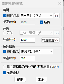 界面可以选择灯具、开关、应急照明三个设备,当不勾选设备前面的选择框时,则不会布置。