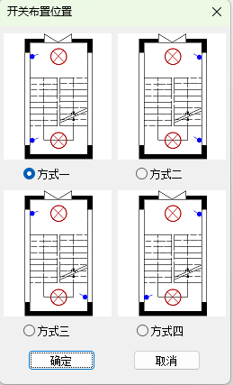 当灯具处于勾选状态时,开关才可以进行布置。需要手动选择双口开关,进行布置; 然后点击“布置位置”按钮,选择开关布置的位置,设置标高数值。