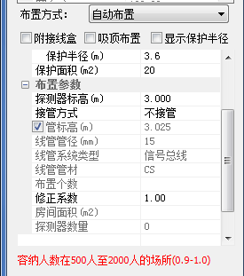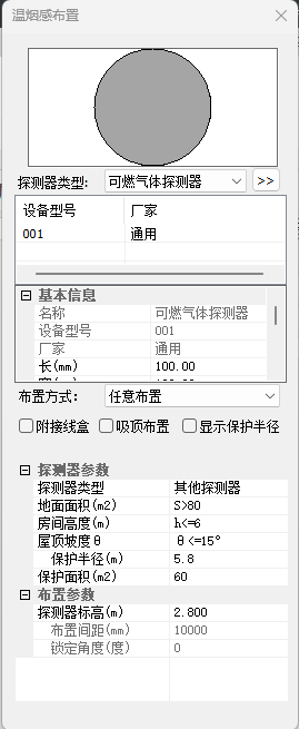 【显示保护半径】:勾选后,将在布置的时候显示之前所有布置过的温烟感的保护半径。