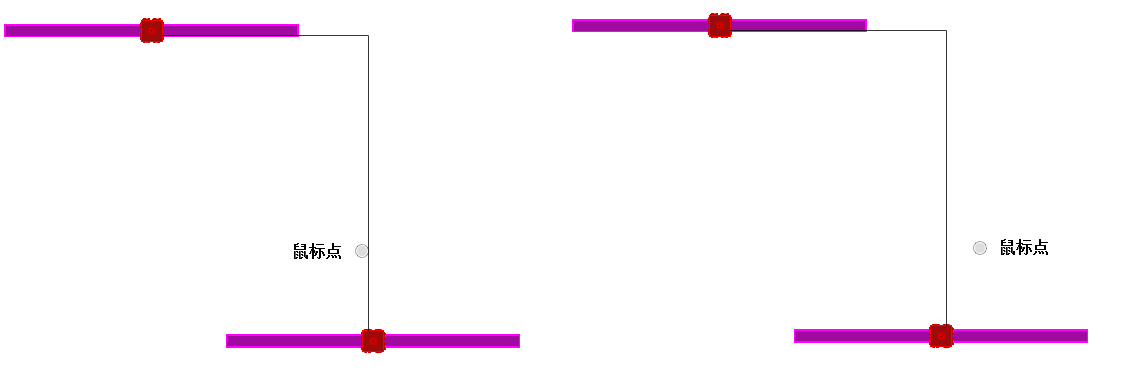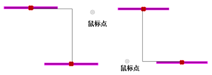 【直角连接】:在模型中点击一个设备,当鼠标选择第二个设备后,移动鼠标,当鼠标点离哪组直角交点近时即可预览到不同直角的连接方式,如图表所示。