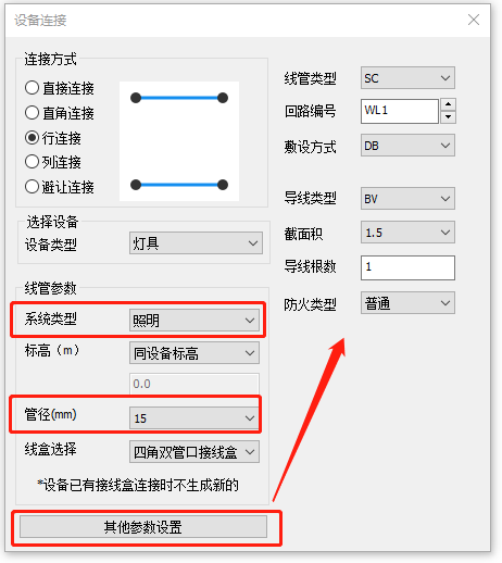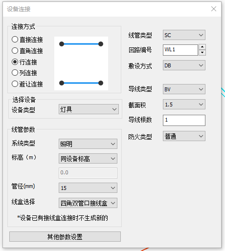 点击其他参数设置,可设置导线和线管类型、敷设方式等。