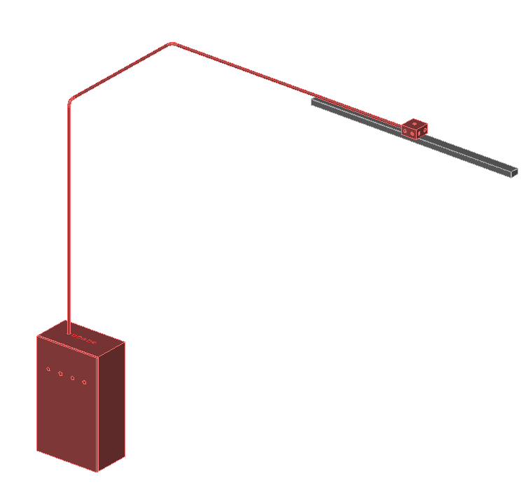 [沿顶板连接】:当选择“沿顶板连接”时选择设备和配电的口的方向需均为Z轴。在设置偏移量时以层高为基准,如需线管在层高之上时,偏移量需为正值。如图表 所示,线管标高为100mm,配电箱标高为0。