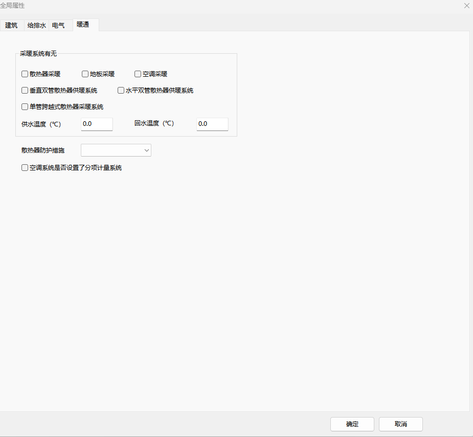 目录 搜索 展开 首页乘车路线版权与商标说明免责声明通用功能链接软件答疑与交流更新说明20262026 R1.22026 R1.12026 R1.020252025 R2.12025 R2.02025 R1.22025 R1.120242024 R2.22024 R2.12024 R2.02024 R1.42024 R1.32024 R1.22024 R1.12024 R1.020232023 R2.42023 R2.32023 R2.22023 R2.02023 R1.12023 R1.52023 R1.42023 R1.32023 R1.22023 R1.020222022 R3.12022 R3.02022 R2.32022 R2.22022 R2.12022 R2.02022 R1.42022 R1.32022 R1.22022 R1.0应用环境运行环境启动界面操作界面快速访问工具栏视图盒子模型操作视图区命令提示行项目浏览器属性面板多窗口显示设置视图工具条光照亮度三维坐标捕捉设置暖通专业设计暖通专业工程设置风系统设置水系统设置风管默认连接设置风管建模设置水管建模设置水管件默认设置风管材料设置水管材料设置地暖盘管材料设置二维设置空调风系统风管绘制风管编辑风立管风管连接件风管对齐风口布置风口连接静压箱换气扇、风机挡烟垂壁空调水系统水管绘制布空调立管多管绘制水管连接水管编辑风盘连水多联机系统室内机室外机多联机连管多联机分歧管采暖系统布散热器立干连接散立连接散干连接散散连接自动盘管手绘盘管盘管打断盘管合并布分集水器连分集水器设备及附件布置风盘水泵常用基础通用组合空调风阀消声器风管软连接水阀仪表角阀三通阀水管软接头组合阀暖通识图建模DWG编辑风管识图翻模水管识图建模风口识图翻模识别水阀仪表暖通标注风管标注风口标注管线文字水管标注立管标注出入户管标注管道坡度标注引出标注给排水专业设计给排水专业工程设置给排水系统设置管件默认设置给排水建模设置水管材料设置二维设置管道建模水管绘制多管绘制布水立管水管连接水管编辑水管连接件管道附件布置自动连接标准连接设备布置与连接卫浴布置卫浴连接水箱水泵基础集水坑排水沟室外设备通用消防系统建模消火栓系统布置与连接自动喷淋系统布置与连接气体灭火建模计算灭火器建模给排水识图建模消火栓识图建模消防喷淋系统水管识图建模水阀识图建模给排水标注管线文字水管标注立管标注出入户管标注喷头定位标注管道坡度标注引出标注电气专业设计电气专业工程设置线管系统设置桥架系统设置桥架默认连接件设置线管建模设置线管材料设置二维设置线管/桥架绘制桥架/线槽桥架布置桥架分支选择竖直桥架布置多层桥架桥架连接线管/导线线管布置竖直线管线管连接线管空间连接导线布置线管对齐强电系统设备灯具开关插座接线盒通用设备布置楼梯间布置防雷接地导体布置防雷布置接地布置弱电系统设备温烟感布置消防报警弱电通用综合布线变配电设备配电箱布置引出线管引出桥架配电箱系统检索变压器配电柜设备基础母线槽布置母线槽连接电缆沟设备连接设备连接连配电箱接口连接连接桥架电气专业计算区域照度计算防雷计算房间照度计算电气负荷计算电流计算负荷计算查看报告书电气专业标注引线布置灯具标注桥架标注导线标注标配电箱标水暖设备标导线数&根数修改设备标注回路标注&回路识别电气识图建模DWG处理工具电气设备点位桥架翻模设备库编辑设备库管理新建设备专业信息添加拆开设备整体缩放导入revit族组合设备库导入模型编辑过滤选择增强过滤器检查分支编辑水平设备标高分支标高分支选择坡度调整设备替换设备编号楼层归属删除重复拾取/刷新属性测量长度面积标高坐标支吊架布置支吊架布置支吊架延管拷贝支吊架沿线拷贝支吊架编号管线综合碰撞检查碰撞检查碰撞结果碰撞报告书管道编辑水暖空间搭接水暖局部调整线管局部调整桥架升降调整间距调整水管标准连接管道合并/打断水管对齐通用对齐管综平面图三维标注局部剖切专业协同合并工程净高分析净高设置净高平面净高检查水暖提资开洞提资任意布洞自动开洞开洞设置取消洞口开洞列表布置套管云协同材料统计材料统计统计结果清单生成清单样式清单结果支吊架统计模型审查审查流程全局属性智能审查通用工具设可见性查找构件选择过滤增强过滤测量工具基本建模模板标高机制机电专业标高机制构件复制 暂无相关搜索结果! 全局属性 点击【审查】-【全局属性】,弹出如下界面,点击全局属性,填写需要审查项目各专业的属性。
