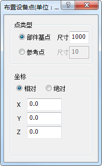 [相对] 指相对当前鼠标点,通过输入xyz布置设备点。需要点击鼠标左键完成布置。
