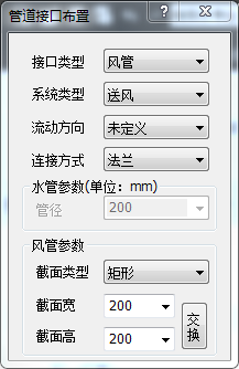 [截面类型] 对于风管接口,可选矩形和圆形,同时设定宽高或直径。