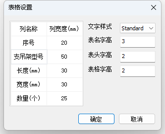 表格设置:设置施工图表格列名列宽、文字样式、字高、表格线宽等,如图12.2-2。