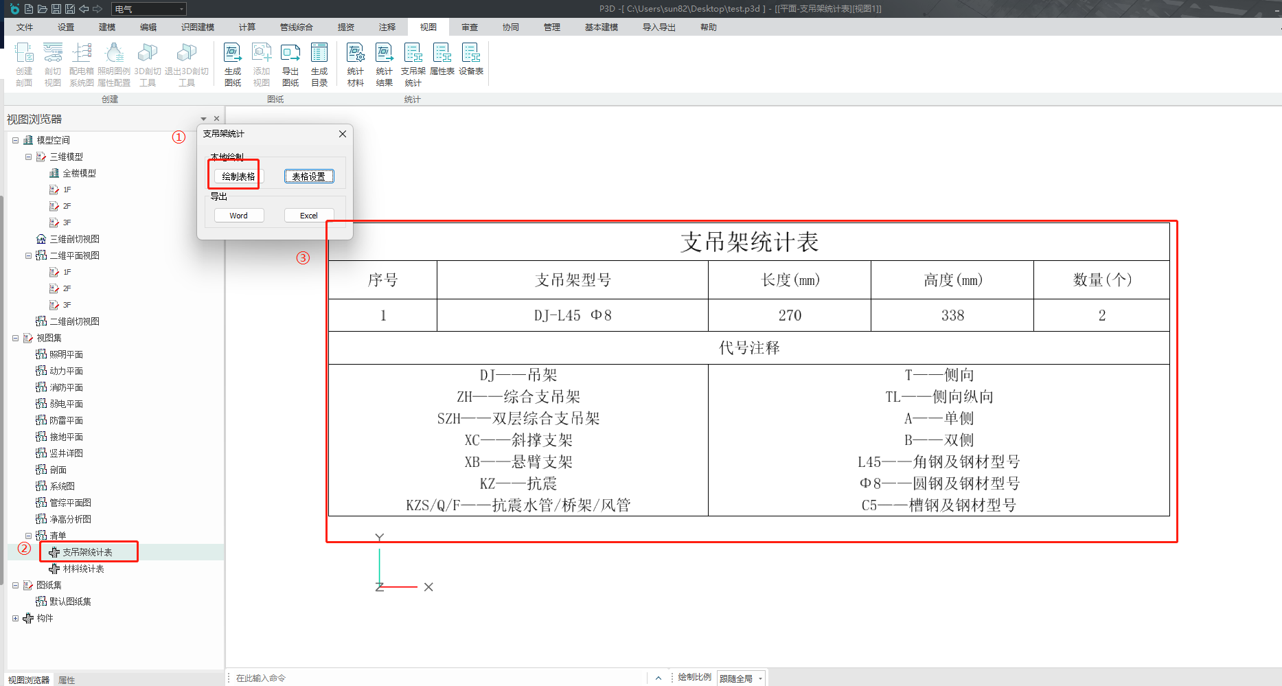 点击【视图】-【统计】-【支吊架统计】。支吊架统计界面如图所示。