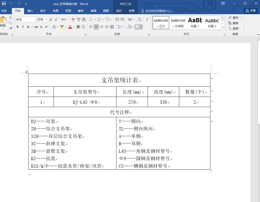 设置完成后,点取图12.2-1中生成word文件,即可输出统计表。
