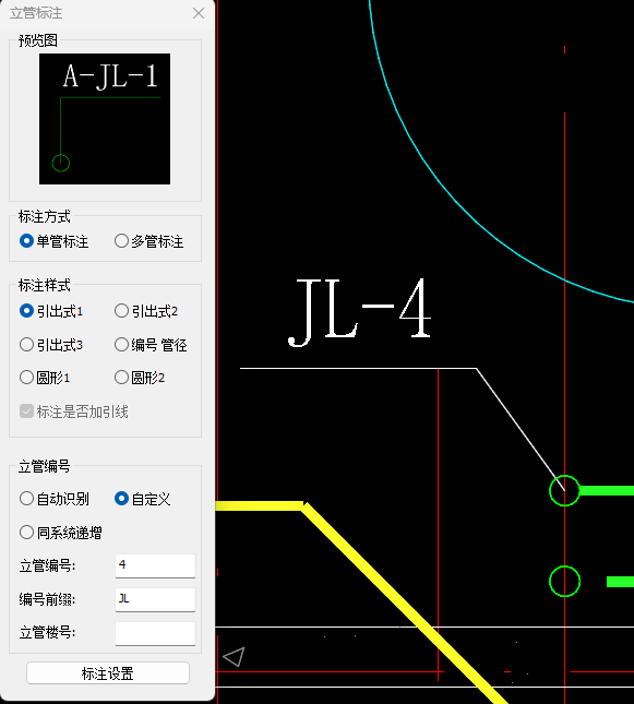 目录 搜索 展开 首页乘车路线版权与商标说明免责声明通用功能链接软件答疑与交流更新说明20262026 R1.22026 R1.12026 R1.020252025 R2.12025 R2.02025 R1.22025 R1.120242024 R2.22024 R2.12024 R2.02024 R1.42024 R1.32024 R1.22024 R1.12024 R1.020232023 R2.42023 R2.32023 R2.22023 R2.02023 R1.12023 R1.52023 R1.42023 R1.32023 R1.22023 R1.020222022 R3.12022 R3.02022 R2.32022 R2.22022 R2.12022 R2.02022 R1.42022 R1.32022 R1.22022 R1.0应用环境运行环境启动界面操作界面快速访问工具栏视图盒子模型操作视图区命令提示行项目浏览器属性面板多窗口显示设置视图工具条光照亮度三维坐标捕捉设置暖通专业设计暖通专业工程设置风系统设置水系统设置风管默认连接设置风管建模设置水管建模设置水管件默认设置风管材料设置水管材料设置地暖盘管材料设置二维设置空调风系统风管绘制风管编辑风立管风管连接件风管对齐风口布置风口连接静压箱换气扇、风机挡烟垂壁空调水系统水管绘制布空调立管多管绘制水管连接水管编辑风盘连水多联机系统室内机室外机多联机连管多联机分歧管采暖系统布散热器立干连接散立连接散干连接散散连接自动盘管手绘盘管盘管打断盘管合并布分集水器连分集水器设备及附件布置风盘水泵常用基础通用组合空调风阀消声器风管软连接水阀仪表角阀三通阀水管软接头组合阀暖通识图建模DWG编辑风管识图翻模水管识图建模风口识图翻模识别水阀仪表暖通标注风管标注风口标注管线文字水管标注立管标注出入户管标注管道坡度标注引出标注给排水专业设计给排水专业工程设置给排水系统设置管件默认设置给排水建模设置水管材料设置二维设置管道建模水管绘制多管绘制布水立管水管连接水管编辑水管连接件管道附件布置自动连接标准连接设备布置与连接卫浴布置卫浴连接水箱水泵基础集水坑排水沟室外设备通用消防系统建模消火栓系统布置与连接自动喷淋系统布置与连接气体灭火建模计算灭火器建模给排水识图建模消火栓识图建模消防喷淋系统水管识图建模水阀识图建模给排水标注管线文字水管标注立管标注出入户管标注喷头定位标注管道坡度标注引出标注电气专业设计电气专业工程设置线管系统设置桥架系统设置桥架默认连接件设置线管建模设置线管材料设置二维设置线管/桥架绘制桥架/线槽桥架布置桥架分支选择竖直桥架布置多层桥架桥架连接线管/导线线管布置竖直线管线管连接线管空间连接导线布置线管对齐强电系统设备灯具开关插座接线盒通用设备布置楼梯间布置防雷接地导体布置防雷布置接地布置弱电系统设备温烟感布置消防报警弱电通用综合布线变配电设备配电箱布置引出线管引出桥架配电箱系统检索变压器配电柜设备基础母线槽布置母线槽连接电缆沟设备连接设备连接连配电箱接口连接连接桥架电气专业计算区域照度计算防雷计算房间照度计算电气负荷计算电流计算负荷计算查看报告书电气专业标注引线布置灯具标注桥架标注导线标注标配电箱标水暖设备标导线数&根数修改设备标注回路标注&回路识别电气识图建模DWG处理工具电气设备点位桥架翻模设备库编辑设备库管理新建设备专业信息添加拆开设备整体缩放导入revit族组合设备库导入模型编辑过滤选择增强过滤器检查分支编辑水平设备标高分支标高分支选择坡度调整设备替换设备编号楼层归属删除重复拾取/刷新属性测量长度面积标高坐标支吊架布置支吊架布置支吊架延管拷贝支吊架沿线拷贝支吊架编号管线综合碰撞检查碰撞检查碰撞结果碰撞报告书管道编辑水暖空间搭接水暖局部调整线管局部调整桥架升降调整间距调整水管标准连接管道合并/打断水管对齐通用对齐管综平面图三维标注局部剖切专业协同合并工程净高分析净高设置净高平面净高检查水暖提资开洞提资任意布洞自动开洞开洞设置取消洞口开洞列表布置套管云协同材料统计材料统计统计结果清单生成清单样式清单结果支吊架统计模型审查审查流程全局属性智能审查通用工具设可见性查找构件选择过滤增强过滤测量工具基本建模模板标高机制机电专业标高机制构件复制 暂无相关搜索结果! 立管标注 点击【注释】-【立管标注】。 功能说明可对立管进行编号标注,有六种不同的标注样式进行选择,且标注样式细节可自定义设置。