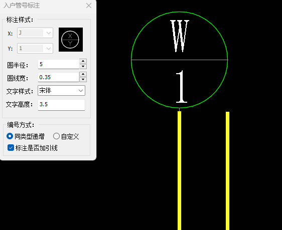 目录 搜索 展开 首页乘车路线版权与商标说明免责声明通用功能链接软件答疑与交流更新说明20262026 R1.22026 R1.12026 R1.020252025 R2.12025 R2.02025 R1.22025 R1.120242024 R2.22024 R2.12024 R2.02024 R1.42024 R1.32024 R1.22024 R1.12024 R1.020232023 R2.42023 R2.32023 R2.22023 R2.02023 R1.12023 R1.52023 R1.42023 R1.32023 R1.22023 R1.020222022 R3.12022 R3.02022 R2.32022 R2.22022 R2.12022 R2.02022 R1.42022 R1.32022 R1.22022 R1.0应用环境运行环境启动界面操作界面快速访问工具栏视图盒子模型操作视图区命令提示行项目浏览器属性面板多窗口显示设置视图工具条光照亮度三维坐标捕捉设置暖通专业设计暖通专业工程设置风系统设置水系统设置风管默认连接设置风管建模设置水管建模设置水管件默认设置风管材料设置水管材料设置地暖盘管材料设置二维设置空调风系统风管绘制风管编辑风立管风管连接件风管对齐风口布置风口连接静压箱换气扇、风机挡烟垂壁空调水系统水管绘制布空调立管多管绘制水管连接水管编辑风盘连水多联机系统室内机室外机多联机连管多联机分歧管采暖系统布散热器立干连接散立连接散干连接散散连接自动盘管手绘盘管盘管打断盘管合并布分集水器连分集水器设备及附件布置风盘水泵常用基础通用组合空调风阀消声器风管软连接水阀仪表角阀三通阀水管软接头组合阀暖通识图建模DWG编辑风管识图翻模水管识图建模风口识图翻模识别水阀仪表暖通标注风管标注风口标注管线文字水管标注立管标注出入户管标注管道坡度标注引出标注给排水专业设计给排水专业工程设置给排水系统设置管件默认设置给排水建模设置水管材料设置二维设置管道建模水管绘制多管绘制布水立管水管连接水管编辑水管连接件管道附件布置自动连接标准连接设备布置与连接卫浴布置卫浴连接水箱水泵基础集水坑排水沟室外设备通用消防系统建模消火栓系统布置与连接自动喷淋系统布置与连接气体灭火建模计算灭火器建模给排水识图建模消火栓识图建模消防喷淋系统水管识图建模水阀识图建模给排水标注管线文字水管标注立管标注出入户管标注喷头定位标注管道坡度标注引出标注电气专业设计电气专业工程设置线管系统设置桥架系统设置桥架默认连接件设置线管建模设置线管材料设置二维设置线管/桥架绘制桥架/线槽桥架布置桥架分支选择竖直桥架布置多层桥架桥架连接线管/导线线管布置竖直线管线管连接线管空间连接导线布置线管对齐强电系统设备灯具开关插座接线盒通用设备布置楼梯间布置防雷接地导体布置防雷布置接地布置弱电系统设备温烟感布置消防报警弱电通用综合布线变配电设备配电箱布置引出线管引出桥架配电箱系统检索变压器配电柜设备基础母线槽布置母线槽连接电缆沟设备连接设备连接连配电箱接口连接连接桥架电气专业计算区域照度计算防雷计算房间照度计算电气负荷计算电流计算负荷计算查看报告书电气专业标注引线布置灯具标注桥架标注导线标注标配电箱标水暖设备标导线数&根数修改设备标注回路标注&回路识别电气识图建模DWG处理工具电气设备点位桥架翻模设备库编辑设备库管理新建设备专业信息添加拆开设备整体缩放导入revit族组合设备库导入模型编辑过滤选择增强过滤器检查分支编辑水平设备标高分支标高分支选择坡度调整设备替换设备编号楼层归属删除重复拾取/刷新属性测量长度面积标高坐标支吊架布置支吊架布置支吊架延管拷贝支吊架沿线拷贝支吊架编号管线综合碰撞检查碰撞检查碰撞结果碰撞报告书管道编辑水暖空间搭接水暖局部调整线管局部调整桥架升降调整间距调整水管标准连接管道合并/打断水管对齐通用对齐管综平面图三维标注局部剖切专业协同合并工程净高分析净高设置净高平面净高检查水暖提资开洞提资任意布洞自动开洞开洞设置取消洞口开洞列表布置套管云协同材料统计材料统计统计结果清单生成清单样式清单结果支吊架统计模型审查审查流程全局属性智能审查通用工具设可见性查找构件选择过滤增强过滤测量工具基本建模模板标高机制机电专业标高机制构件复制 暂无相关搜索结果! 出入户管标注 点击【注释】-【出入户管标注】。 功能说明选中对应的管道,可对入户给水管、出户污水管等进行标注。标注内容可自定义编写。