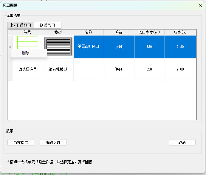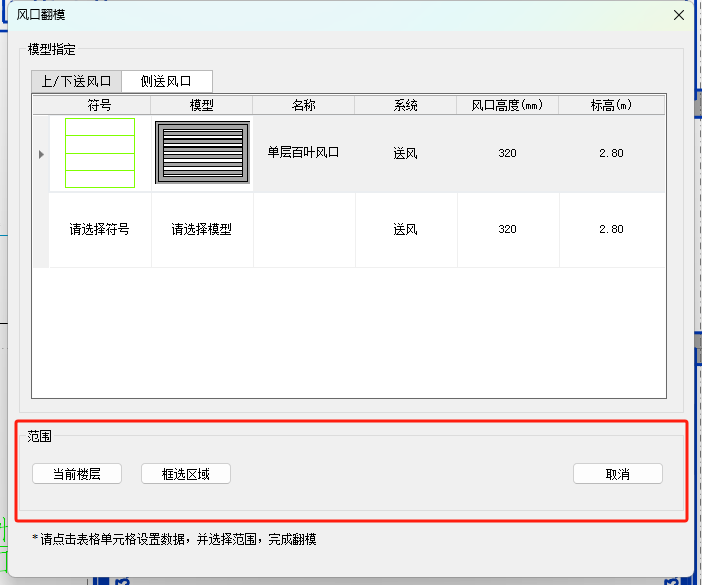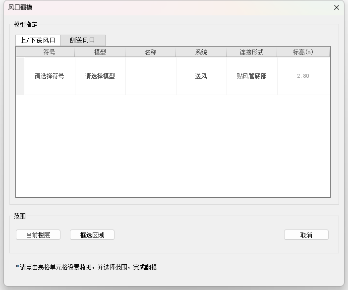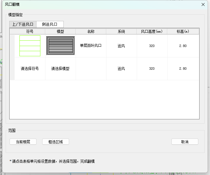 - 确定好需要翻模的风口送风形式:上/下送风口或者是侧送风口;