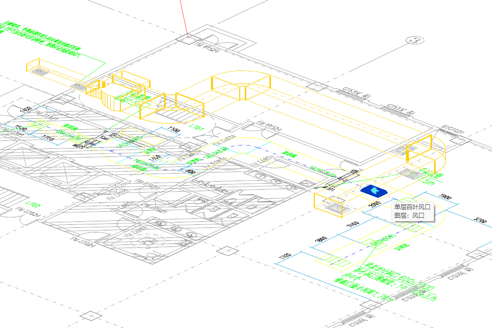 - 当选择侧送风口时,拾取图纸上的风口块,指定三维需生成的风口模型、指定风口的系统类型(如果风口与风管连接风口即为风管的系统类型),指定风口的高度和风口的标高,
