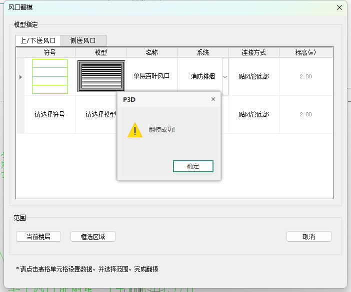 - 指定好各类参数后,选择翻模的范围,即可完成翻模。