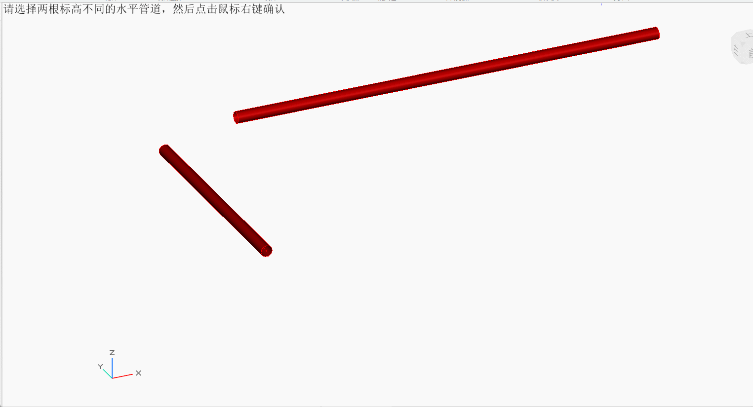 先选择两根标高不同的管道,再从界面上选择连接角度,完成两根管道的连接。
